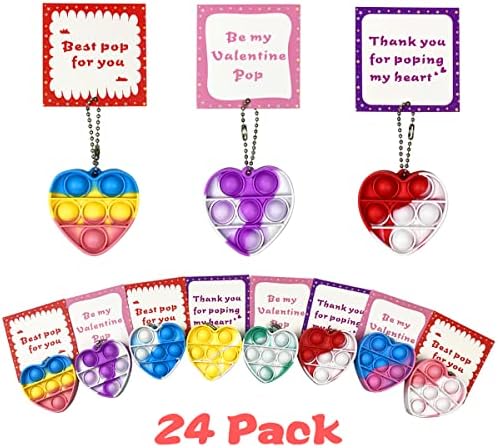 Anditoy 24 PCS Valentines Cards with Mini Heart Pop Toys for Kids School Class Classroom Valentines Day Gifts Prizes Party Favors