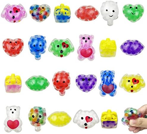 Anditoy 24 PCS Valentines Day Mini Squeeze Balls with Water Beads Stress Relief Toys for Kids School Class Classroom Valentines Day Cards Gifts Prizes Party Favors