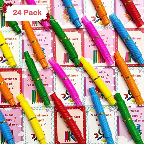 Anditoy 24 Pack Valentines Cards with Mini Pop Tubes Toys for Kids School Class Classroom Valentines Day Gifts Prizes Party Favors