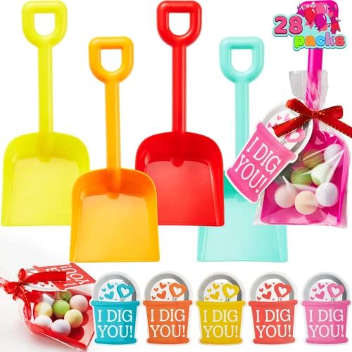 JOYIN 28 PCS Plastic Toy Shovels with I DIG YOU Cards, 28 Candy Bags with Ribbon for Valentine’s Party Favors Supplies, Valentine’s Toys, Classroom Exchange Prizes Valentine’s Gifts