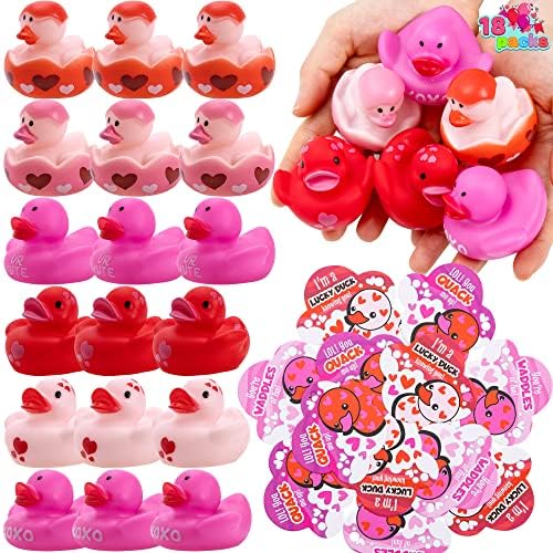 JOYIN 18 Pcs Valentine’s Day Gift Cards with Rubber Duck,Mini Rubber Duck Bath Toys for Classroom Exchange Prizes, Valentine Party Favors Toys
