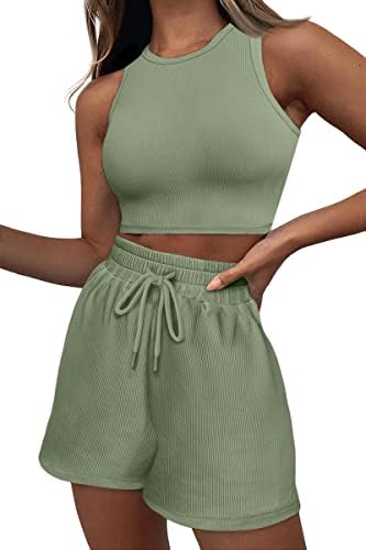 AUTOMET Womens 2 Piece Outfits Lounge Sets Sleeveless Crop Top and Drawstring Shorts Sweatsuits Summer Casual Tracksuits 2023