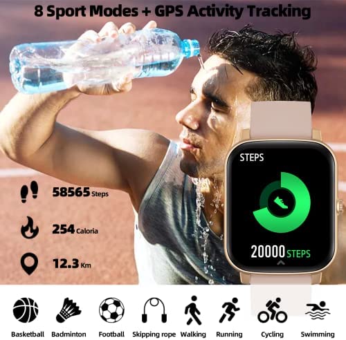 🏃【Your Exclusive Sports Life】Accurately record your daily activities like number of steps, distance, calories burned. It helps you track daily activities with real-time stats on smart watch men and get good fitness effects. Supports multiple sports modes, such as swimming, running, cycling, etc. You can intuitively read your exercise data on the watch. Smart watch for iphone compatible with android 4.4 and above, iOS 8.0 and above smartphone.
