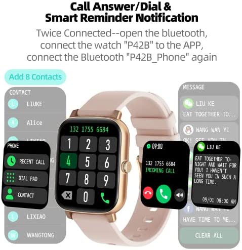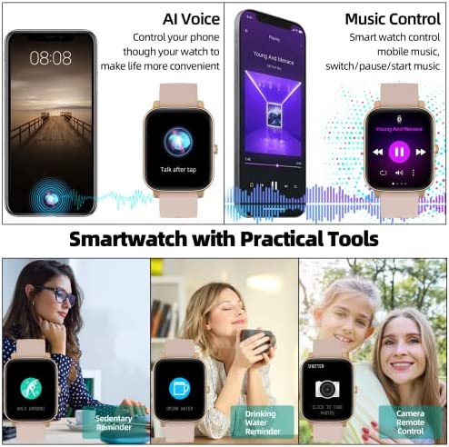 ⌚【1.7 Inch Large Screen Smart Watch】Smart watch for women men with 1.7 inch Super Retina HD display, 245*285 HD resolution, better color saturation, the picture quality is more delicate and clear, bring you more open visual enjoyment. In Addition, 150+ watch dials can be used, and you can define your own photo album.Be yourself better from a watch.
