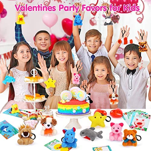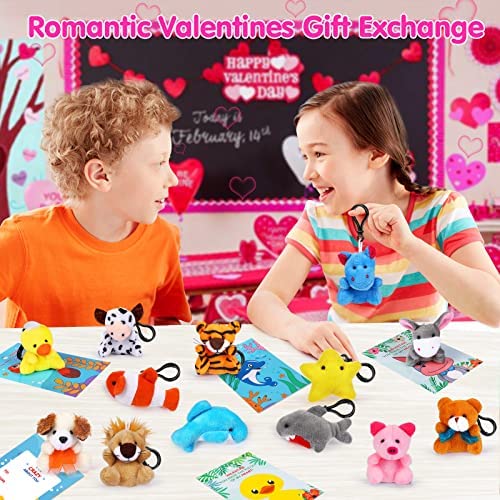 🎁PERFECT VALENTINES GIFTS FOR KIDS – The Valentines plush toys gift set contains 28 lovely stuffed animals keychain & 28 Valentines cards. Every mini toy has cute appearance & vibrant colors, definitely win the hearts of kids on Valentine’s Day! And each Valentines day card printed with humorous love words, ideal as Valentines exchange cards to send blessings for your love ones!