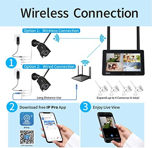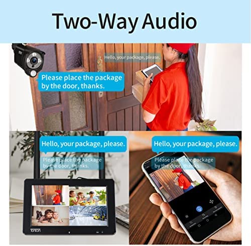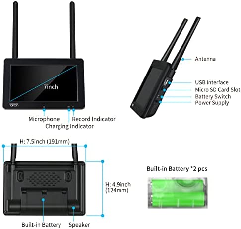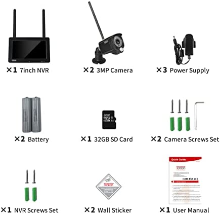 【Portable 7″ IPS Touchscreen Monitor】: The IPS touchscreen monitor will let you get a wide viewing angle. Crystal clear night vision visibility ensures footages. 32GB SD card are included. Please noted: Only the monitor preinstalled rechargeable battery, the cameras didn’t preinstall battery, you need to plug the power adapter of camera all the time