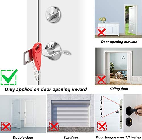 HIGH-QUALITY MATERIAL – The door security device is made of strong stainless steel. Rugged ABS plastic cover to prevent damage to doors under pressure. Steel surfaces with electroplating and polishing technology ensure a smooth touch and minimize any injury to your skin. A strong door lock with high quality may guarantee prolonged service life.
