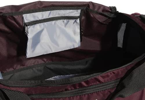 Keep gear organized and separated with this medium-size duffel bag. it’s made of durable woven fabric with a water-resistant base. it has a spacious main compartment and a ventilated side pocket for wet or muddy shoes. a padded shoulder strap and padded handles make for comfortable carrying.