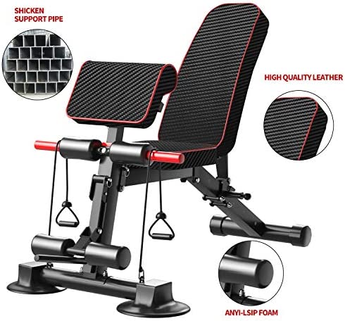 ✅COMFORTABLE & ERGONOMIC DESIGN : Comfortable high-density foam padding and seat secures body firmly and reducing muscle fatigue during workout. This Weight Bench Features a soft leather which is filled with dense foam padding so it is comfortable to do multiple exercises.