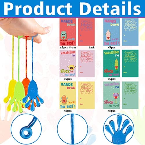 ✔️【VALENTINES GIFT CARD】Kids valentines day cards kit includes 30pcs valentines greeting cards and 30pcs hands and hearts sticky toys. The colorful and funny valentine’s cards design will be popular with boys and girls, a great valentine’s greeting gift to exchange on Valentine’s Day.