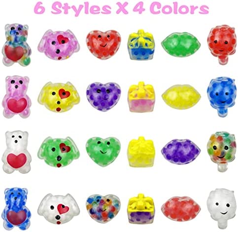 Anditoy 24 PCS Valentines Day Mini Squeeze Balls with Water Beads