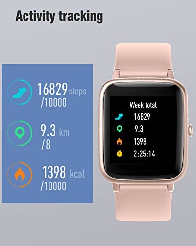 【More Practical Features】When the watch is connected to the phone, click the “find yourphone” icon on the watch, and the phone will send out an alert to help you find your phone quickly. Adjustable brightness allows you to see the screen clearly even in the sun. Adopting wrist sensing design, just raise your wrist to wake up the screen. In addition, it features timer, stopwatch, sedentary reminder, female menstrual cycle tracking etc.