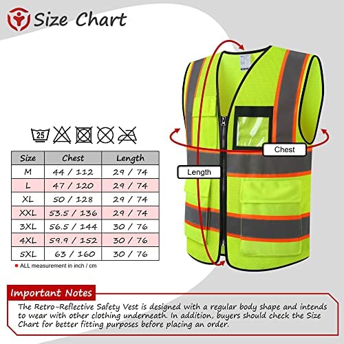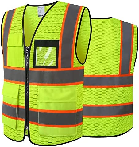 TOTAL 8 POCKETS: Neon safety vest with 8 pockets including 2 large lower pockets. Reflective vest with pockets and zipper is designed for easy sorting and easy access for various tools and equipment of work vest, such as mobile phone,flashlight,laser pointer, business cards, ID cards and other items.