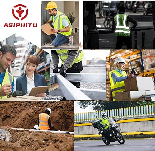 HIGH VISIBILITY: Asiphitu high reflective vest bring safety visible both day and night with the high visibility 2-inch wide high reflective silver tape.The safety vest raiders 360-degree reflective light waves to provide protection in any lighting condition while working or outdoors.