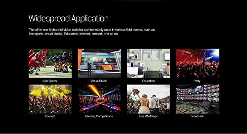 Thin compact all-in-one 6-Channel Video Switcher with built-in 15.6′ FHD LCD monitor. Switch up to six different video inputs while recording the program feed. The multiview layout allows you to show preview, program, and input sources all on the same screen, PIP and POP screen positioning is adjustable.