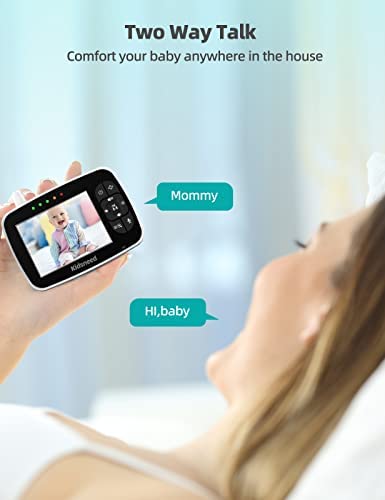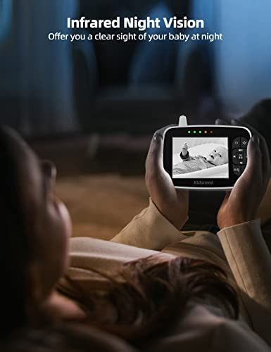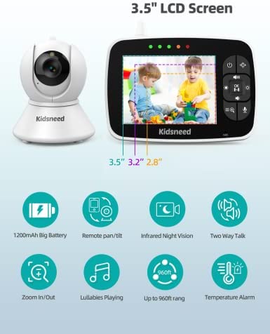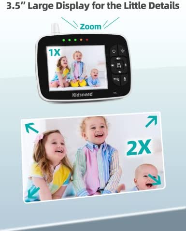 Full Viewing Control: Kidsneed baby monitor with camera is combined with 355°horizontal angle & 115°vertical rotation range create a full room view. Remote pan and tilt easily with the parent unit. At the touch of a button, you can zoom in with the 2x digital zoom function and watch your baby more closely. On the high-resolution screen of the baby monitor, you can clearly see every small movement of your baby. The 3.5 inch screen can fully capture the entire picture of the baby