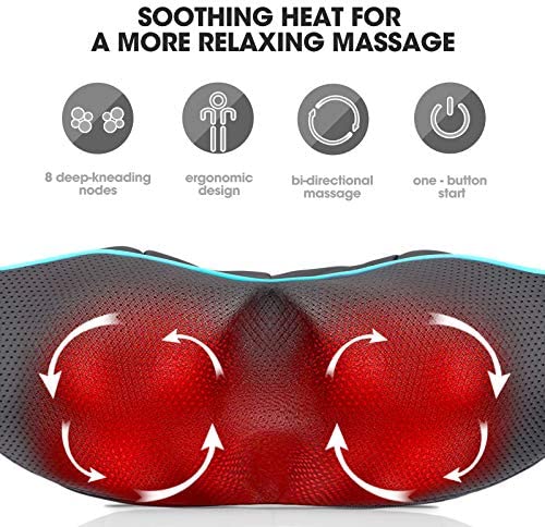 HEATING FUNCTION & ADJUSTABLE INTENSITY – This neck massager pad has 3 speed strength levels, which allow you to get the right and appropriate amount of pressure to relieve your muscle pain. The heating function with the back massager further massage fatigued muscles and reduce stress. Overheating protection and 15 minutes auto shut-off function guarantee you a safe massage journey. It can also be turned off manually