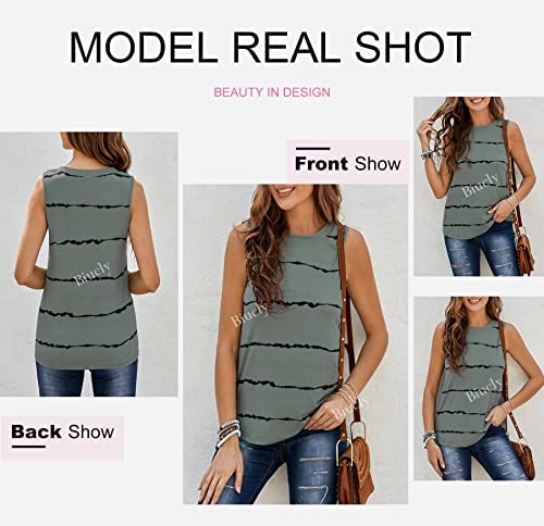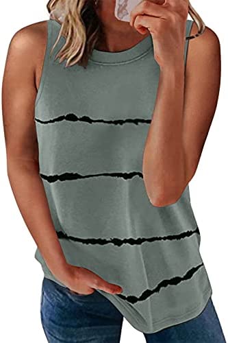 Feature: Casual Crewneck, Sleeveless Tops,Loose Flowy,Striped Printed Design.