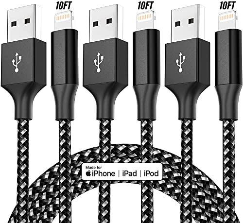 💎【Delightful Length&Superior Durability】3 black Apple MFi-certified iPhone charging cable, 10 feet extra long, feel free to choose where to charge. iPhone charging cable with reinforced joint designs that have passed many times bending tests for extra protection and durability.