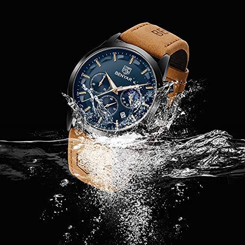 COMFORT&DURABLE: When you need a watch prove that you value your time. BENYAR Leather strap watch, not only makes a comfortable sense for your wrist but also easy to match your clothes. Our Analog wrist watches are perfect for the adventurer or the everyday man who is looking for a stylish match his outfit. Our passion drives us towards perfection, putting in hours and hours of work to get a truly amazing and unique end product.