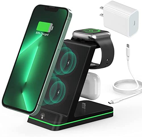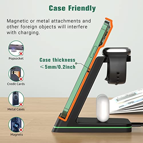 【Wide Compatibility Charging Station】A must device for Apple fans! 3 in 1 fast charging station is equal to one charger station for iWatch, one Phone charging stand, 1 charging dock for AirPods. Wide compatibility to cover all Android and IOS devices which support wireless charging, compatible with iPhone 14/14 Plus/14 Pro/14 Pro max/13/13 Pro max/13 Pro/13mini/12/12 Pro/12 Pro Max/12mini/11/11 Pro/11 Pro Max/XS/XS Max/XR/X/8/8P & iWatch 8/SE/7/6/5/4/3/2 & AirPods Pro 2/Pro/3/2/1.