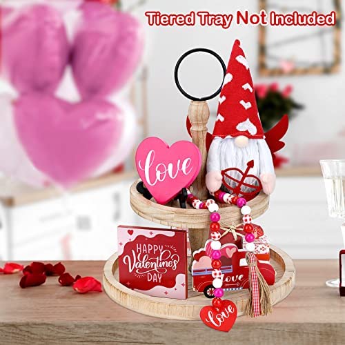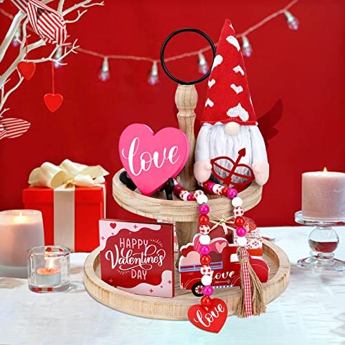 Colovis Valentines Day Decor, 5pcs Valentine Tiered Tray Decor(Tray Not Included), XO Love Wooden Signs Valentine Gnome Plush and Bead Garland for Valentine's Day Wedding Home Kitchen Decor