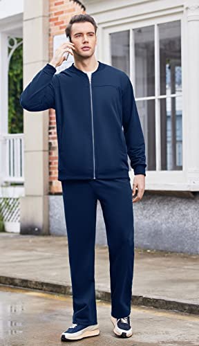 FULL ZIP TRACKSUITS – Sports jacket and sweatpants, casual tracksuits set, and training sweatsuits for men. Zippered sweat jacket set can be worn in a variety of flexible ways and are easy to slip on and off. The sweatpants have delicate waist elastic design with drawstring enable the free adjustments for a better fit.