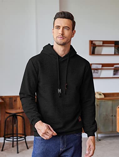 COOFANDY Men’s Casual Hoodies Sweatshirt Hipster Gym Long Sleeve Drawstring Plaid Jacquard Pullover Hooded