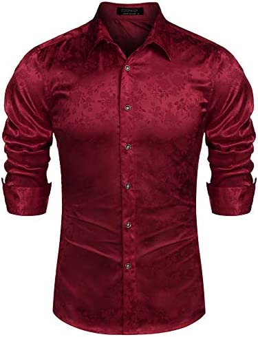 COOFANDY Mens Floral Rose Printed Long Sleeve Dress Shirts