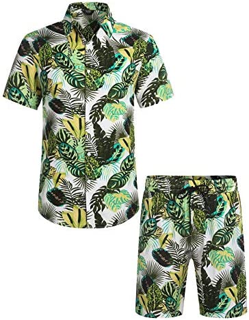Mens Hawaiian Shirt and Matching Shorts, Soft and comfortable, breathable and silky, loose fit, button-down closure, spread collar and short sleeve tops; And Hawaiian Beach Shorts with slanted side pockets and rear pockets, mid rise, elastic waist and drawstring closure, The pockets can be for carrying your small accessories like keys, phone, coins, etc. Simple and classic matching of shirts and shorts suits, save you the time of choosing matching. Very comfortable to wear in summer.