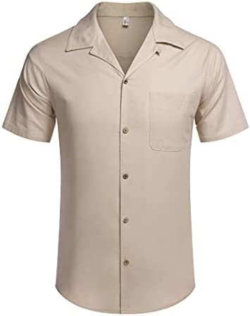 COOFANDY Men’s Linen Shirt Button Down Short Sleeve T Shirt Casual Cotton Relaxed Fit Floral Beach Shirts