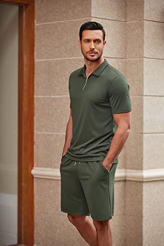 Classic Design – The 2 piece summer outfit is simple and classic style. Polo shirt designs with quarter zip, collared, short sleeve and muscle fit cut. And the short is featured with two side slant pockets, one back pocket and elastic drawstring for adjusting the waist size.