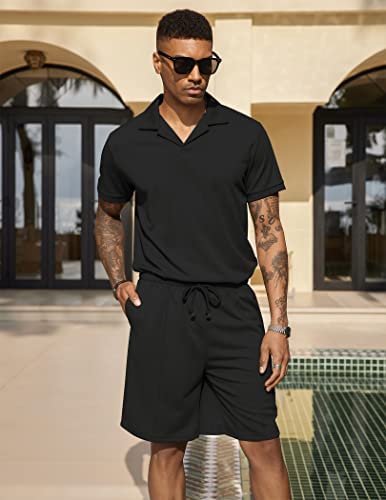 COOFANDY Mens Fashion Polo Shirt and Shorts Set