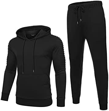 【Features1】 Men 2 Piece Tracksuit Set, Hoodie: Pleated long sleeve, solid color, hooded with drawstring, Kangaroo Pocket, slim fit. Elastic ribbed cuffs and stretchy hem provide optimal range of motion when exercising.