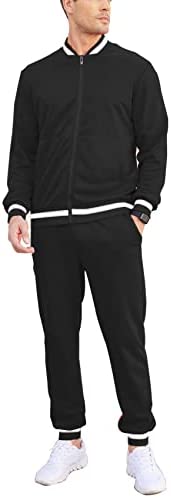 【Features1】Men 2 Piece Casual Tracksuit , Zippered Jacket can be worn in a variety of flexible ways and are easy to slip on and off; baseball collar, classic contrasting color, 2 side pocket, slim fit, Elastic ribbed cuffs and stretchy hem provide optimal range of motion for workouts but for lounging as well.