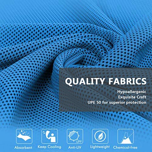 KEEP CHILLS: The towel stays chilled for up to 3 hours (depending on conditions). No chemicals are used in the making of the cooling towels. It’s perfect for hot flashes, outdoor activities, indoor exercise, fever or headache therapy, heatstroke preventio sunscreen protection, cooling while absorbing