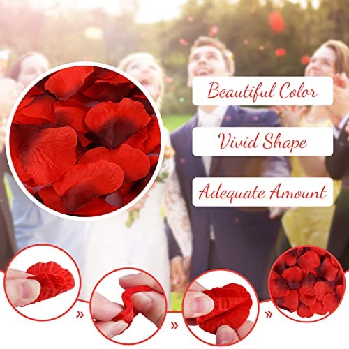 DeckTheHalls 2000 PCS Rose Petals for Romantic Night for him / her Set-Artificial Rose Petals with Non-Woven Fabric-Fake Rose Petals for Valentine's Day, Wedding, Party or Table Decoration-Dark Red