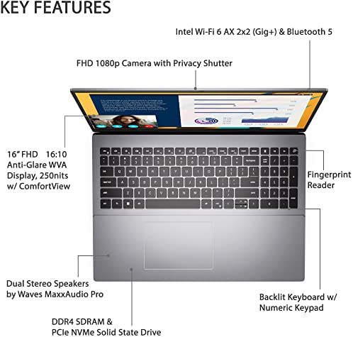 Display: 16.0-inch 16:10 FHD (1920 x 1080) Anti-Glare Non-Touch 250nits WVA Display with ComfortView Support