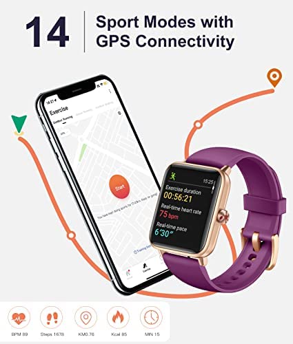 【Support 14 Sport Modes & IP68 Waterproof】Fitness watch is designed with industry-leading IP68 water resistance technology, which allows you to swim in the pool with no worries. Supports 14 sport modes, walk, run, mountain, swim, yoga, hiking, cycle, treadmill, etc. It gives you more details into your body activities and tracks all your workout data (step counter, pedometer, pace, distance, calories burned, miles with cellphone GPS) to help you exercise scientifically and achieve fitness goals.