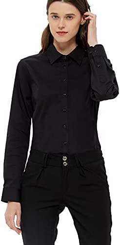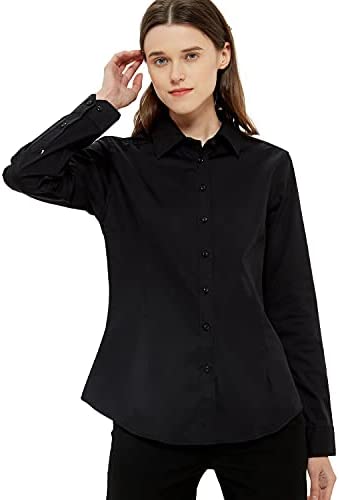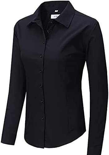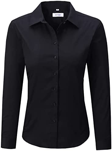 Women’s Slim-Fit Button Down Shirts Stretchy Cotton Long Sleeve Work Blouse.