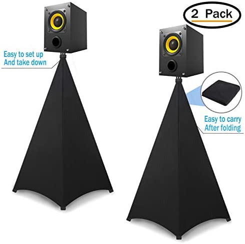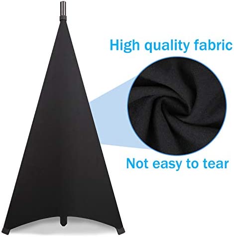UPGRADED ELASTIC FABRIC:The speaker stand cover is made of stretchable Lycra fabric.The elasticity of the fabric can be extended up to 6’high. It is suitable for most standard speaker tripods. Tight sewing and strong materials make the tripod stand cover not easy to tear and extend the service life of the dj stand.