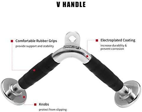 V Handle with Rotation(Double D Handle) – Constructed of high-quality solid steel with polished chrome finish.Textured rubber coating handle,provides ergonomic & secured grip during workout, provides a balanced force to both arms when attach it to any gym machine.