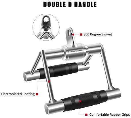 DYNASQUARE Tricep Press Down Cable Machine Attachment, LAT Pulldown Attachments, Home Gym Accessories, Double D Handle, V-Shaped Bar, Tricep Rope, Pull Down Straight Bar