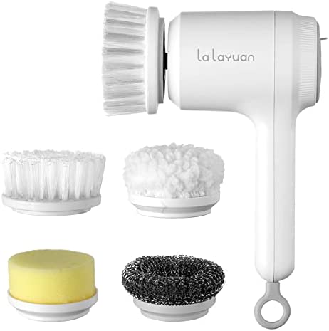 This portable spin scrubber comes with a handy hook, you can hang it on wall to let it dry. Waterproof design, rinse directly after use, free people from annoying daily cleaning by offering an advanced cleaning tech. Although the electric scrubber brush for cleaning shouldn’t be completely submerged in water, it resists splashes. The flat brush is made of durable stiff PP bristles which is not easy to shed, can be used as a back scrubber for shower.