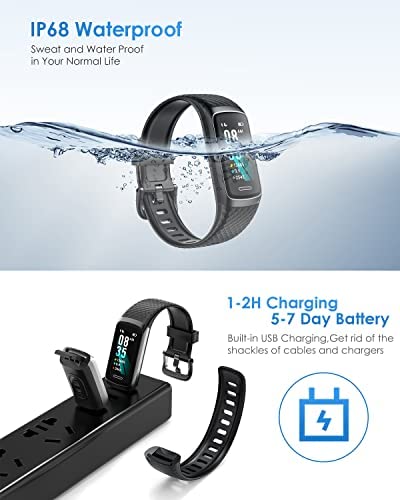 24/7 Heart Rate and Sleep Monitoring: Our fitness tracker supports automatic and manual mode to record each heart rate, allowing you to see your heart rate changes during exercise, keep your heart rate in the corresponding zone during exercise, and control exercise intensity reasonably. It can record your sleep duration, identify sleep status, scientifically analyze sleep quality, and help you develop regular sleep habits.
