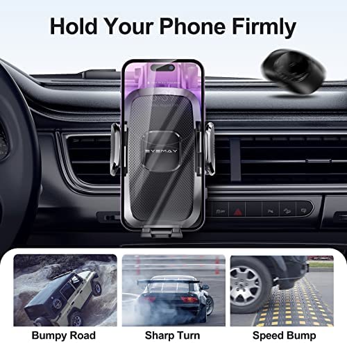 Adjuestable Long Arm: EYEMAY phone mount for car has a 360° rotation ball-joint and telescopic arm, you can adjust best anlgle as you wish. Provide you with safer driving whether you are navigating, or charging. Applicable to all cars, SUVs, trucks, and taxis, Ubers.