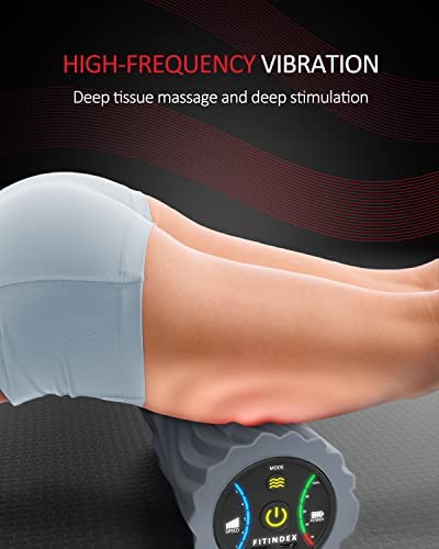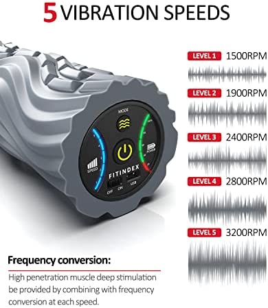 FITINDEX Vibrating Foam Roller 5-Speed , Next Generation Electric Foam Roller for Muscle Relax, Fitness Deep Massage Foam Roller for Post-Workout – Gray