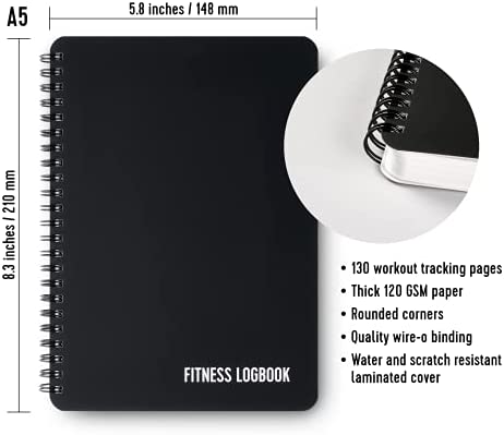 Fitness Logbook – Thick Paper, Durable Cover – A5 – 6 x 8 inches – Undated Workout Journal, Planner Log Book to Track Weight Loss, Muscle Gain, Gym Exercise, Bodybuilding Progress – For Men & Women