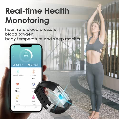 【Real-time Health Monotoring&Women’s Health】- The fitness tracker monitor your heart rate,blood pressure,blood oxygen and body temperature,which help you know body condition.It also can monitor your sleep duration and sleep quality.The fitness tracker design period record and reminder in the App “Runmifit” for female users.(Note:The blood pressure,blood oxygen and body temperature values monitored by this watch are for reference only and cannot be used for medical purposes)