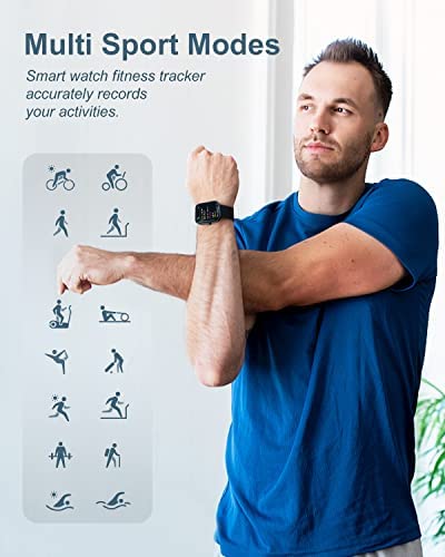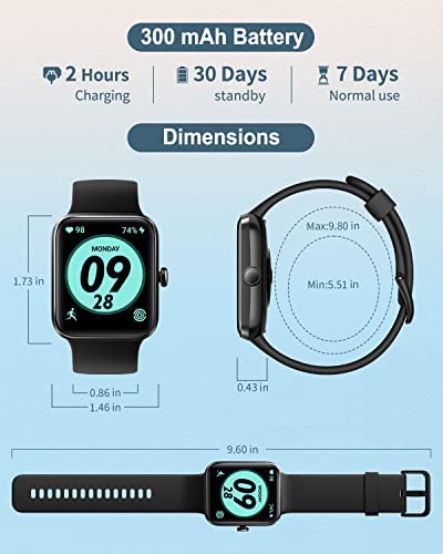 【Smart Life Partner with You】Check daily workout clearly on a 1.69” HD bright color display. Create customized fitness schedules and goals, Get vibration alerts for all notifications, including phone calls, texts, and social media app alerts. Never miss a message with smart notifications delivered right to your wrist. You also can check real-time weather and change your music on the smartwatch